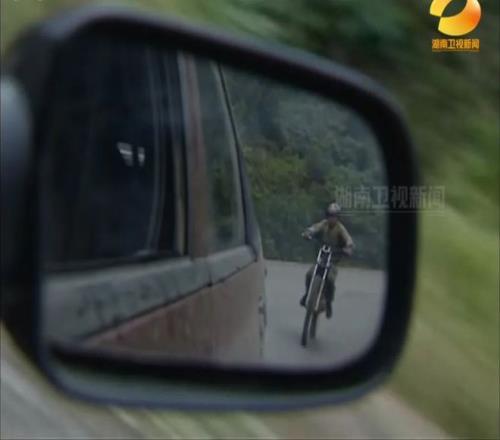夏收时节,他骑着破旧摩托在田埂、山路上练骑行,有条溪边小径只有三十公分宽。
